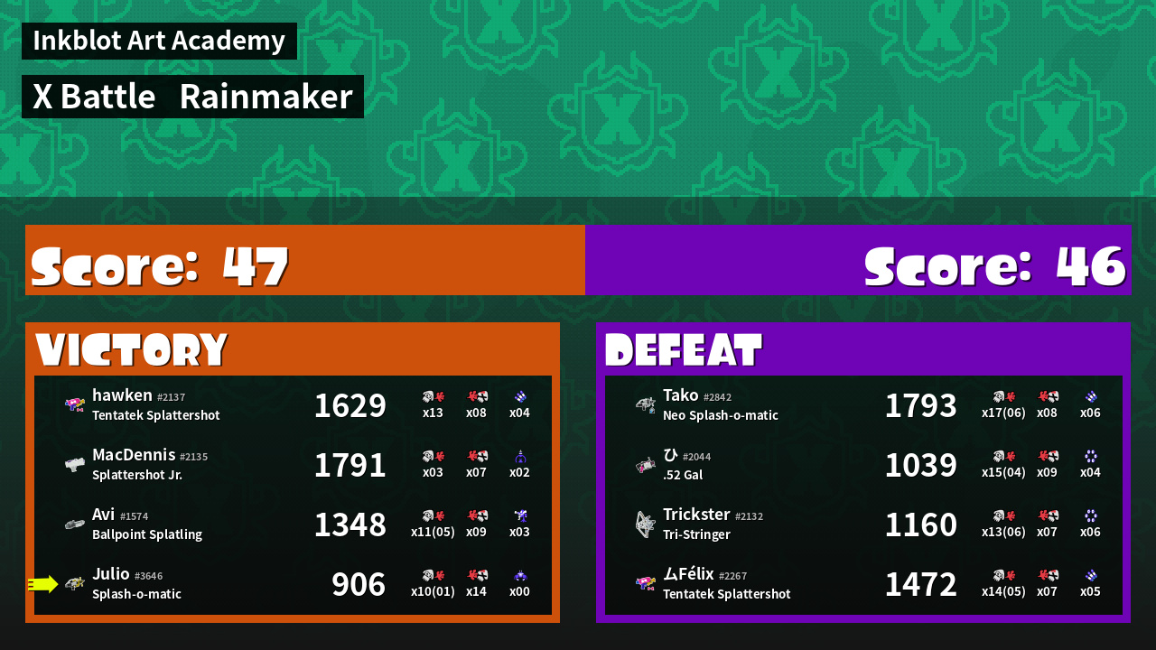 | Mode | Rainmaker - X Battle | ||