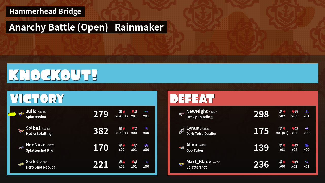 | Mode | Rainmaker - Anarchy Battle (Open) | ||