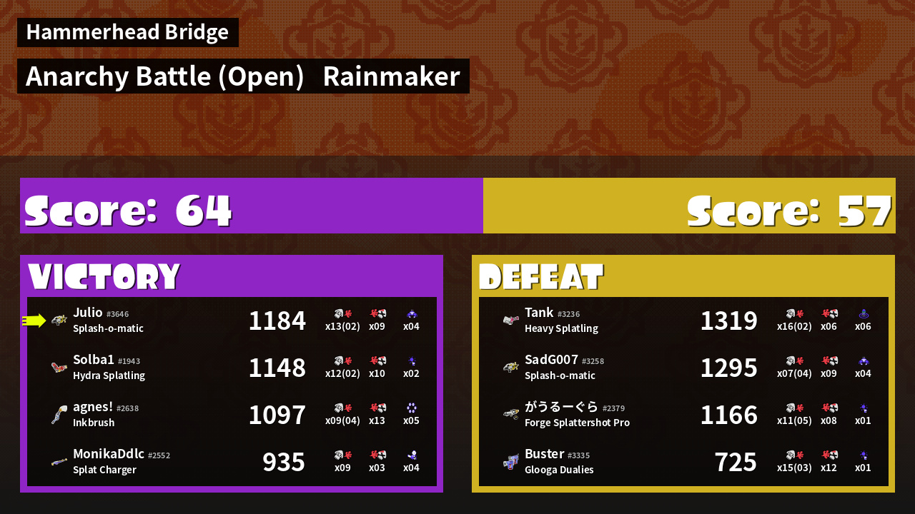 | Mode | Rainmaker - Anarchy Battle (Open) | ||