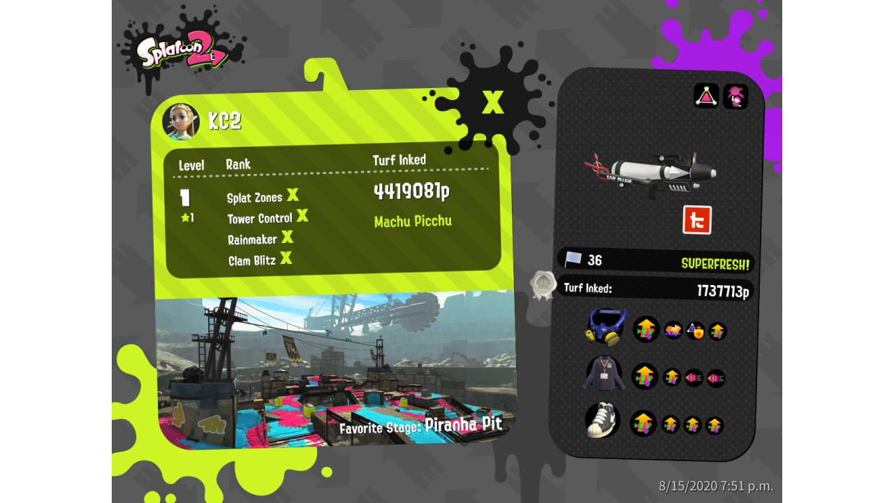 | Name | Weapon | Level | Rank | Inked | k+a/sp | k/d |
