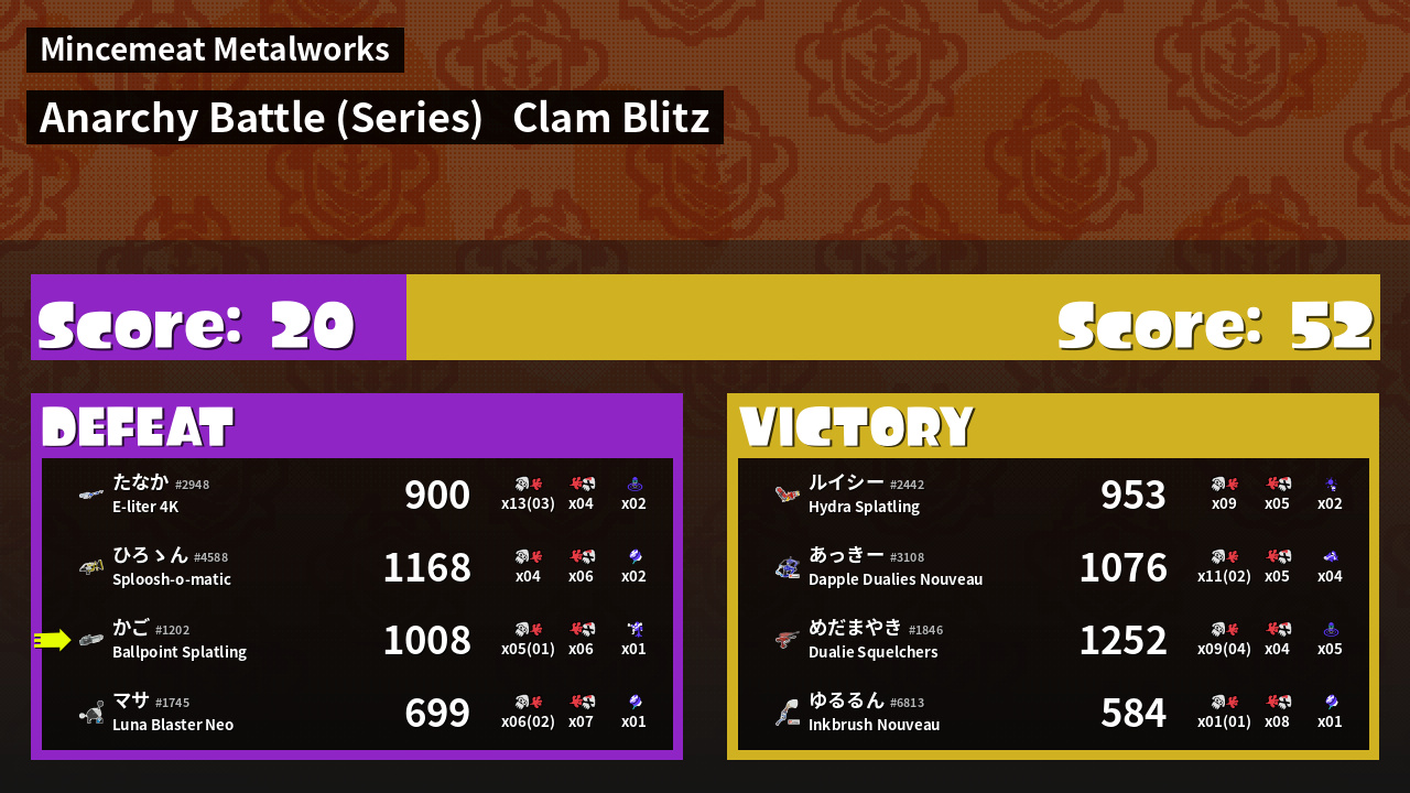 | Mode | Clam Blitz - Anarchy Battle (Series) | ||