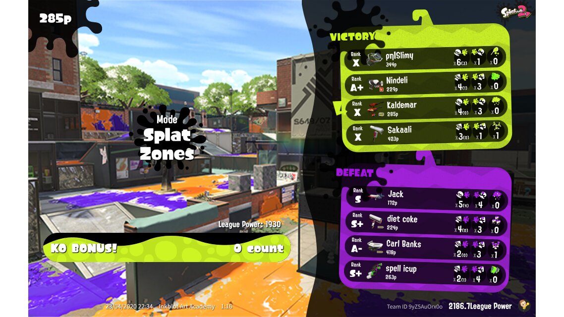 | Mode | Splat Zones - League Battle (Quad) | |||||||||||||||||||||||||||||||