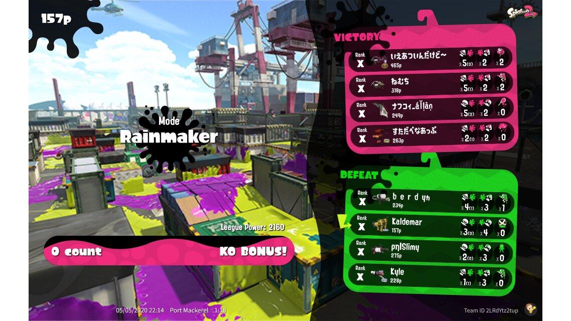 | Mode | Rainmaker - League Battle (Twin) | |||||||||||||||||||||||||||||||||||||||||||