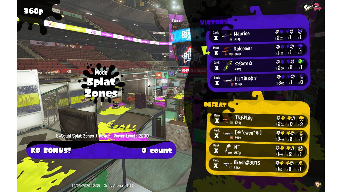 | Mode | Splat Zones - Ranked Battle | |||||||||||||||||||||||||||||||