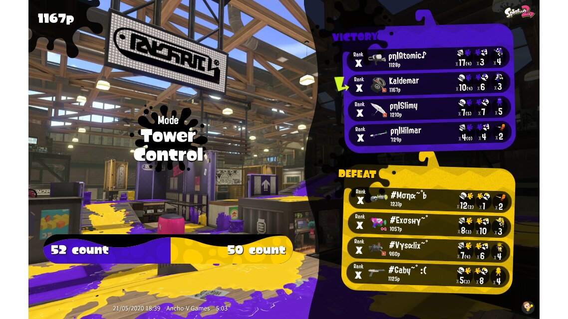 | Name | Weapon | Level | Rank | Inked | k+a/sp | k/d |