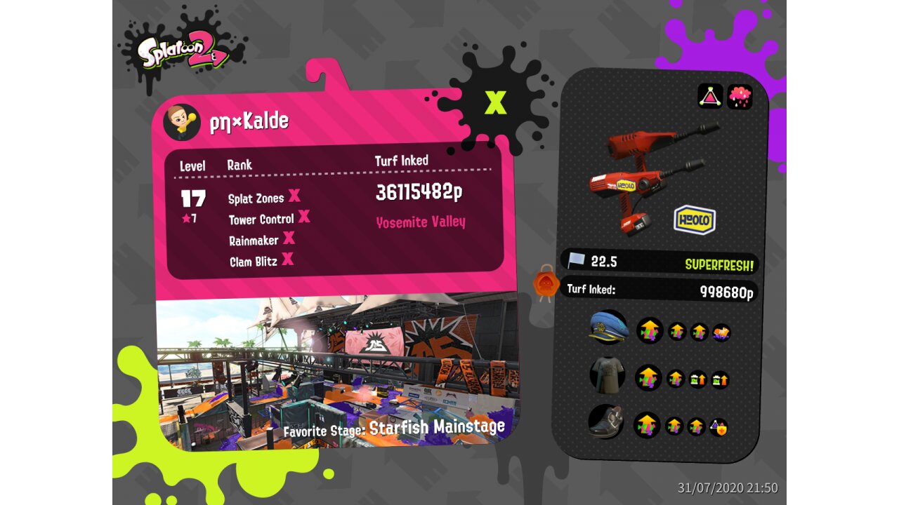 | Name | Weapon | Level | Rank | Inked | k+a/sp | k/d |