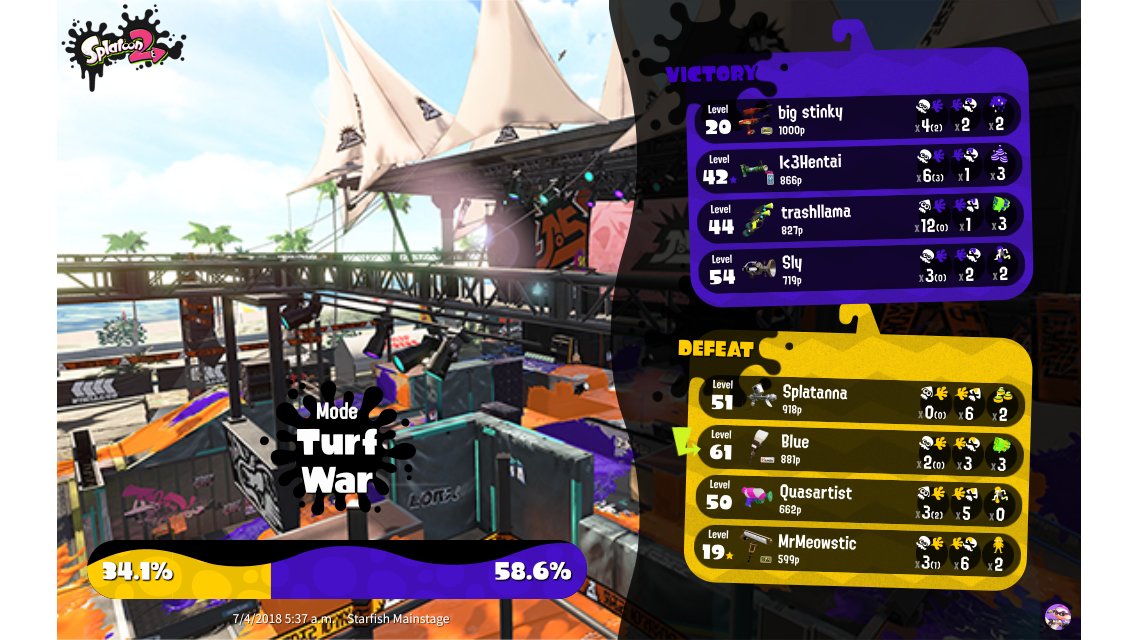 | Mode | Turf War - Regular Battle | |||||||||||||||||||||||||||||||