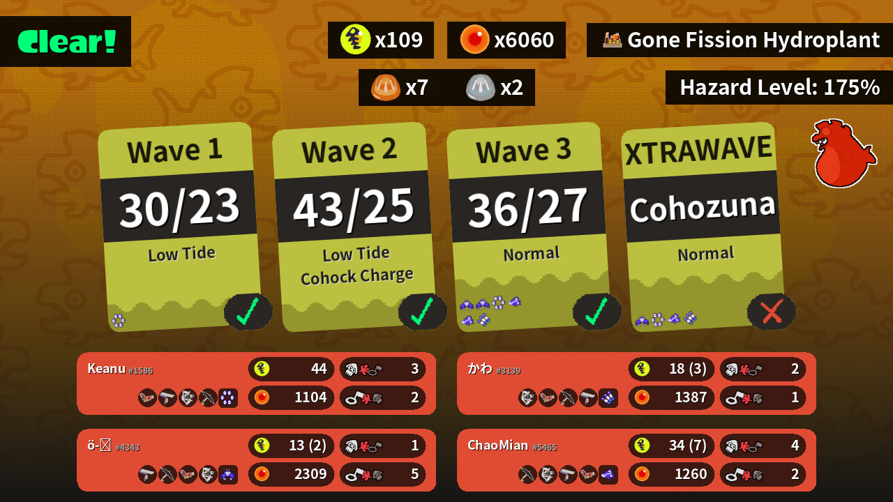 | Weapons | Hydra Splatling Splat Roller REEF-LUX 450 Undercover Brella | Undercover Brella REEF-LUX 450 Splat Roller Hydra Splatling | REEF-LUX 450 Hydra Splatling Undercover Brella Splat Roller | Splat Roller Undercover Brella Hydra Splatling REEF-LUX 450 |