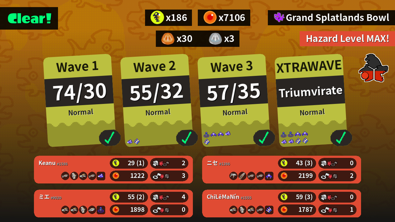 | Weapons | Grizzco Charger Grizzco Stringer Grizzco Blaster Grizzco Charger | Grizzco Blaster Grizzco Stringer Grizzco Blaster Grizzco Charger | Grizzco Blaster Grizzco Blaster Grizzco Stringer Grizzco Brella | Grizzco Roller Grizzco Splatana Grizzco Charger Grizzco Charger |