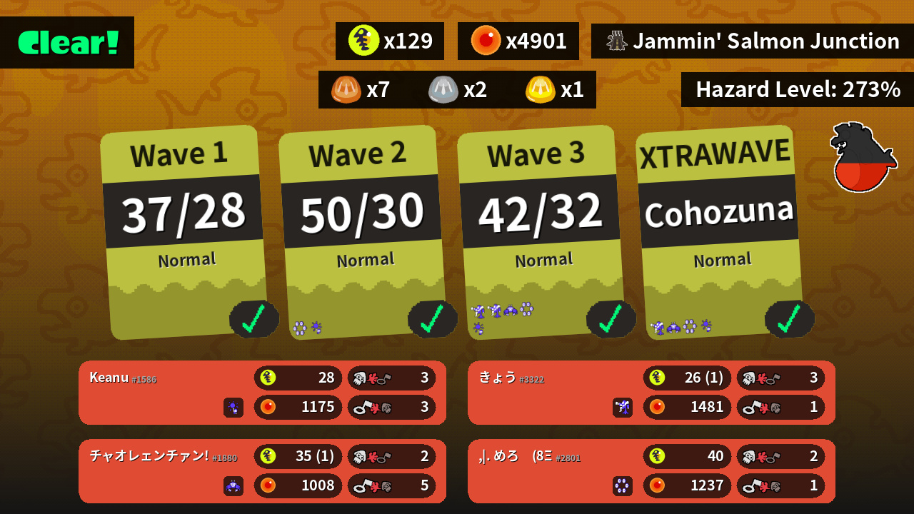 | Boss Salmonid | 23 | 31 | 28 | 25 |