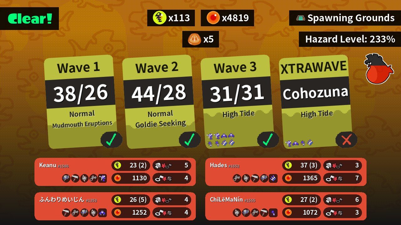 | Weapons | Clash Blaster Flingza Roller Tri-Stringer Aerospray MG | Aerospray MG Tri-Stringer Flingza Roller Clash Blaster | Tri-Stringer Clash Blaster Aerospray MG Flingza Roller | Flingza Roller Aerospray MG Clash Blaster Tri-Stringer |