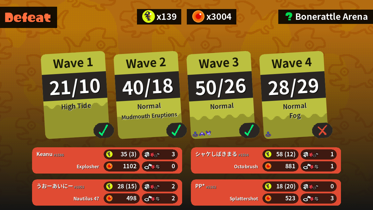 | Boss Salmonid | 16 | 11 | 14 | 11 |