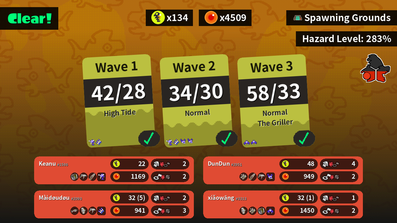 | Weapons | Grizzco Slosher Grizzco Roller Grizzco Splatana | Grizzco Dualies Grizzco Splatana Grizzco Roller | Grizzco Stringer Grizzco Dualies Grizzco Slosher | Grizzco Charger Grizzco Stringer Grizzco Roller |