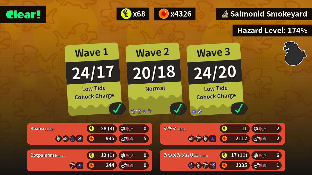 | Boss Salmonid | 12 | 10 | 0 | 26 |