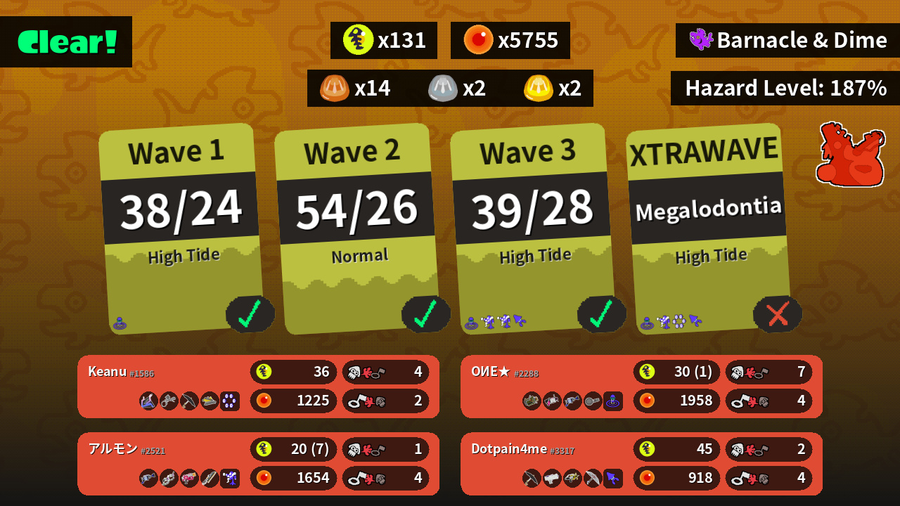 | Weapons | Slosher Aerospray MG Undercover Brella Dread Wringer | Undercover Brella Splattershot Jr. Splash-o-matic Splat Brella | Explosher .52 Gal H-3 Nozzlenose Nautilus 47 | H-3 Nozzlenose Dark Tetra Dualies Rapid Blaster Splatana Wiper |