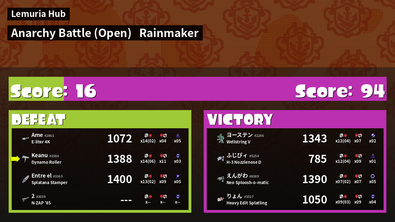 | Mode | Rainmaker - Anarchy Battle (Open) | ||