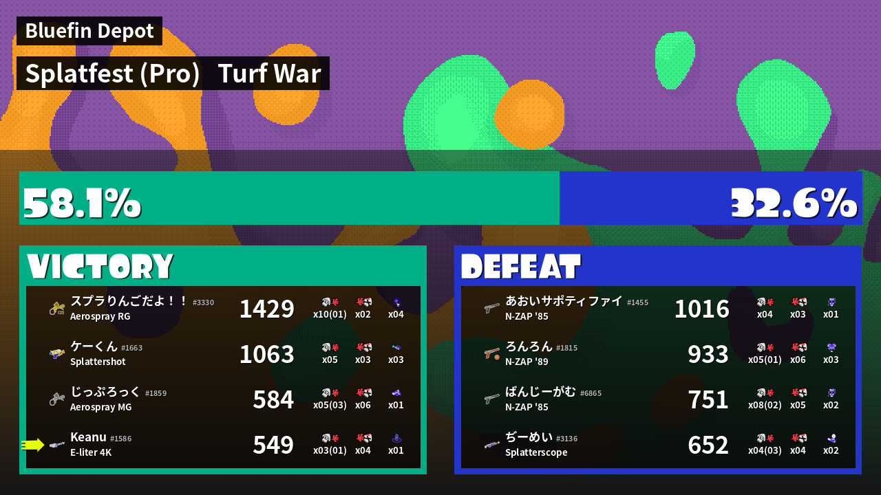 | Mode | Turf War - Splatfest (Pro) | ||