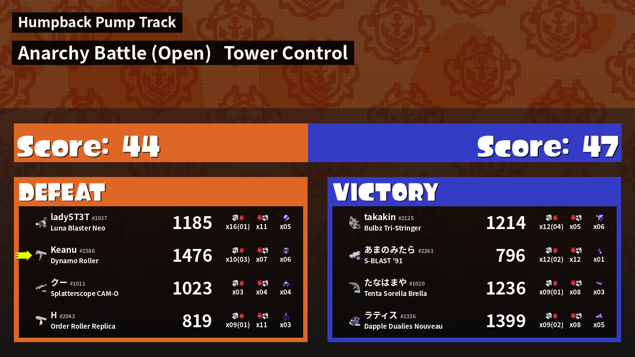 | Mode | Tower Control - Anarchy Battle (Open) | ||