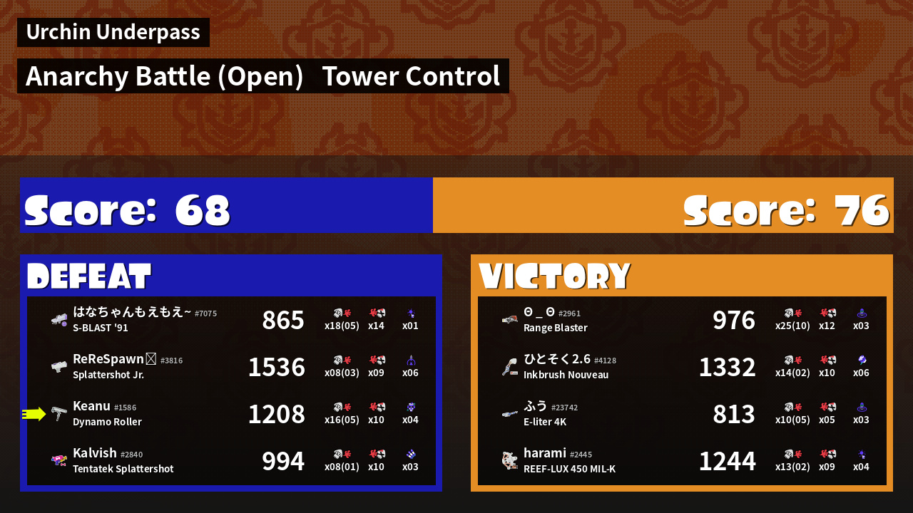 | Mode | Tower Control - Anarchy Battle (Open) | ||