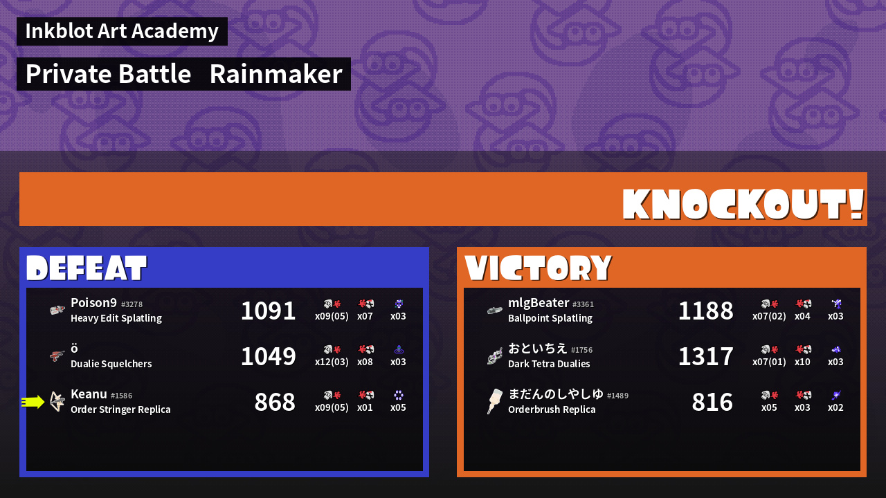 | Medals | #1 Splat Assister #1 Damage Taker #1 Killer Wail 5.1 User | ||