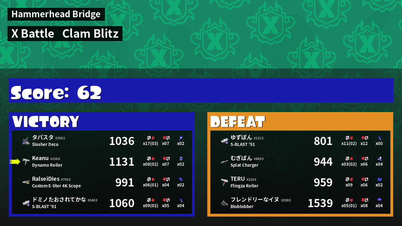 | Mode | Clam Blitz - X Battle | ||