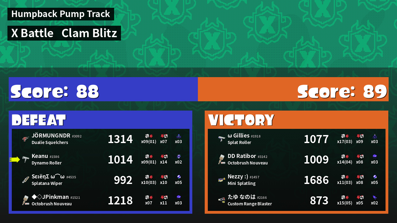 | Medals | #1 Score Booster #1 Clam Carrier #1 Enemy Splatter | ||
