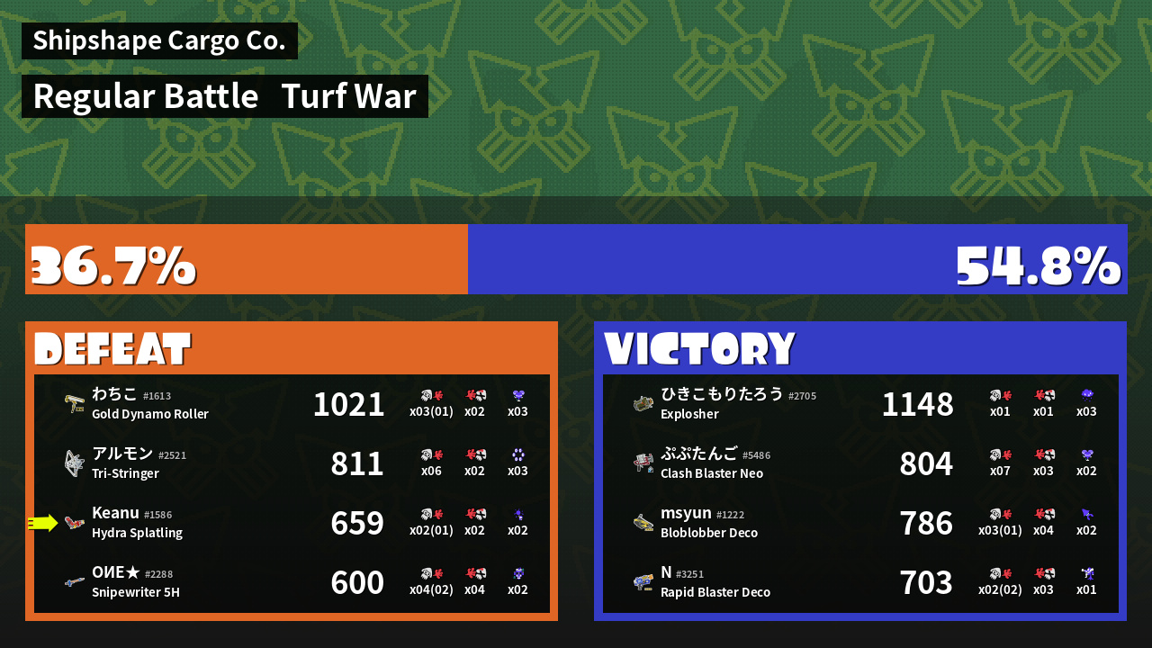 | Medals | #2 Enemy-Base Inker #2 Splat Assister | ||