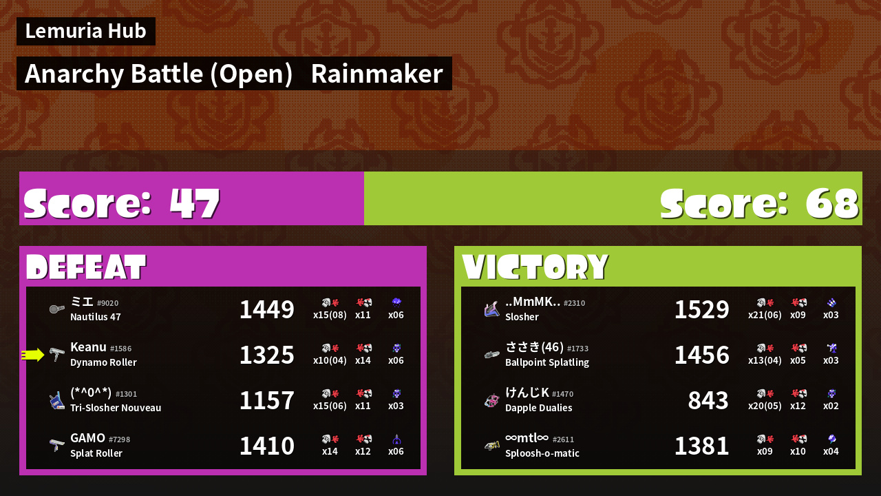 | Mode | Rainmaker - Anarchy Battle (Open) | ||