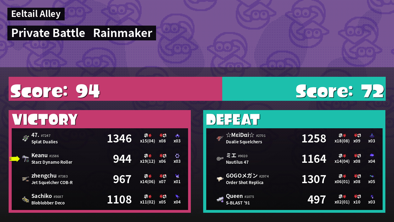 | Medals | #1 Overall Splatter #1 Splat Assister #1 Ink Consumer | ||