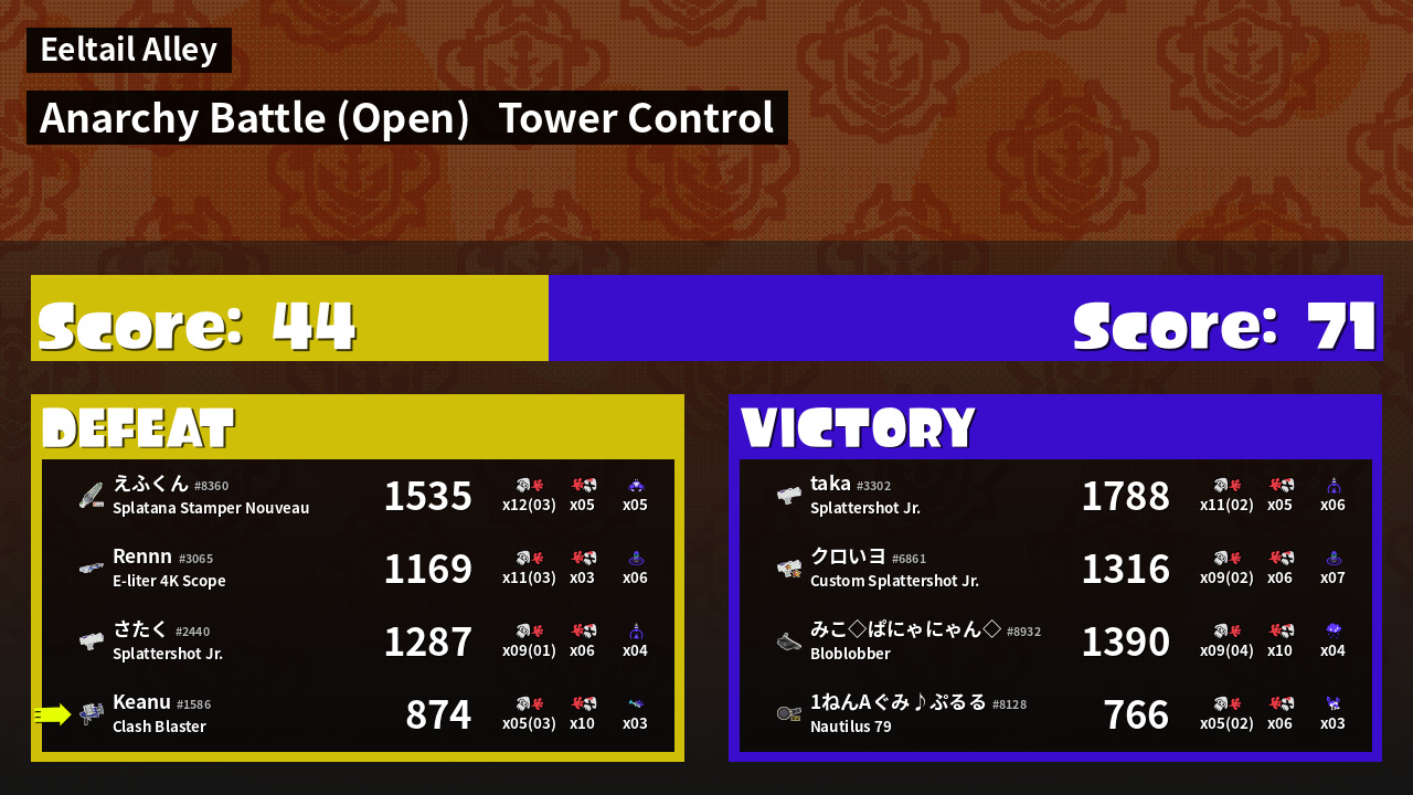 | Mode | Tower Control - Anarchy Battle (Open) | ||