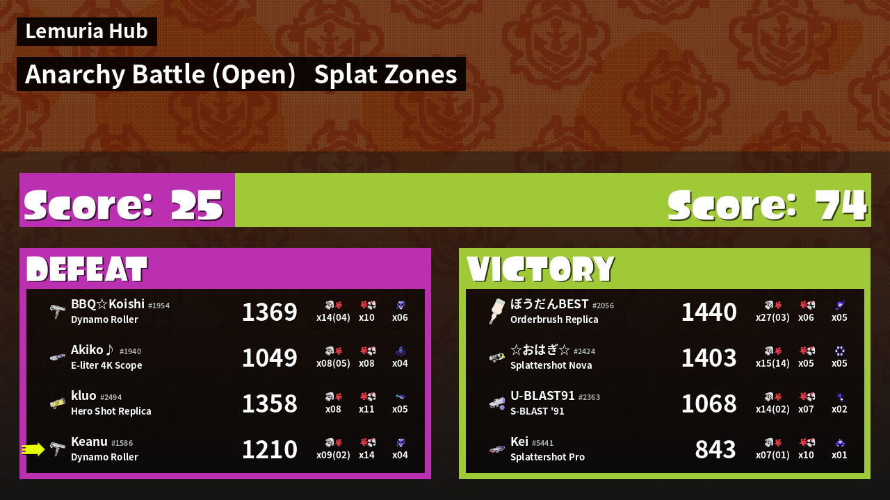 | Mode | Splat Zones - Anarchy Battle (Open) | ||