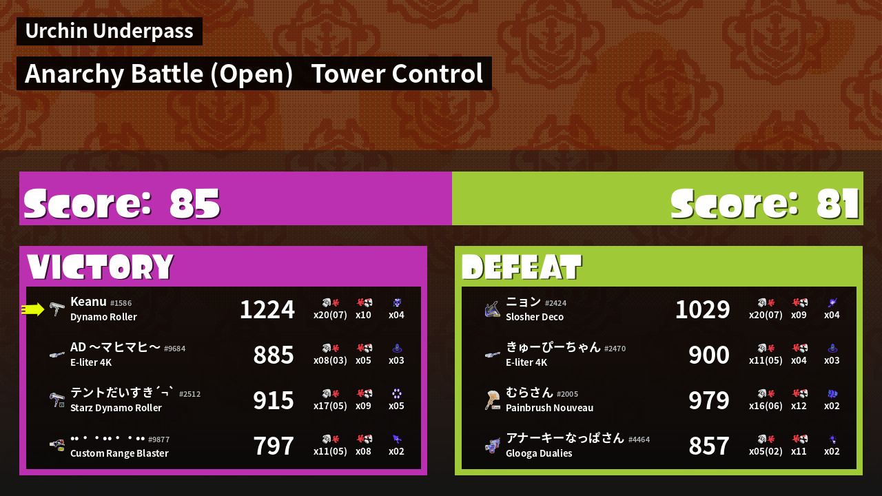 | Mode | Tower Control - Anarchy Battle (Open) | ||