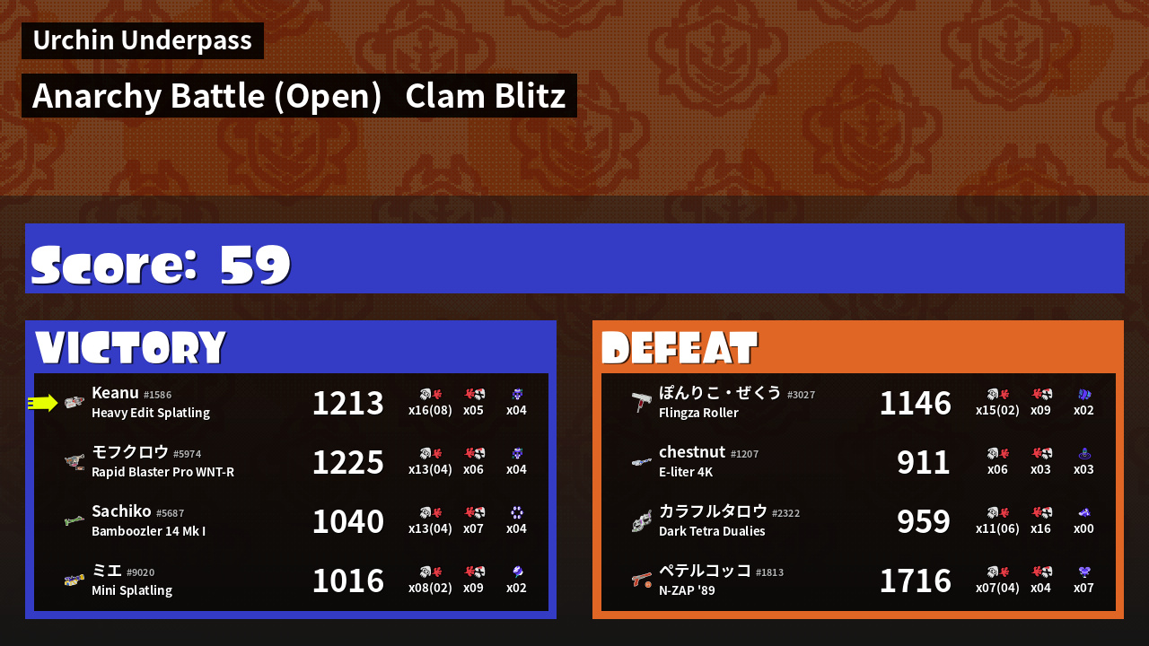| Mode | Clam Blitz - Anarchy Battle (Open) | ||
