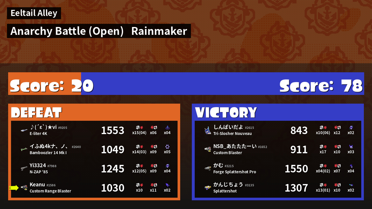 | Mode | Rainmaker - Anarchy Battle (Open) | ||