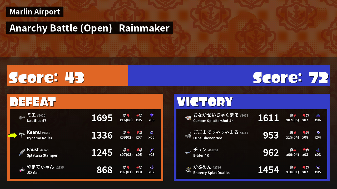 | Mode | Rainmaker - Anarchy Battle (Open) | ||