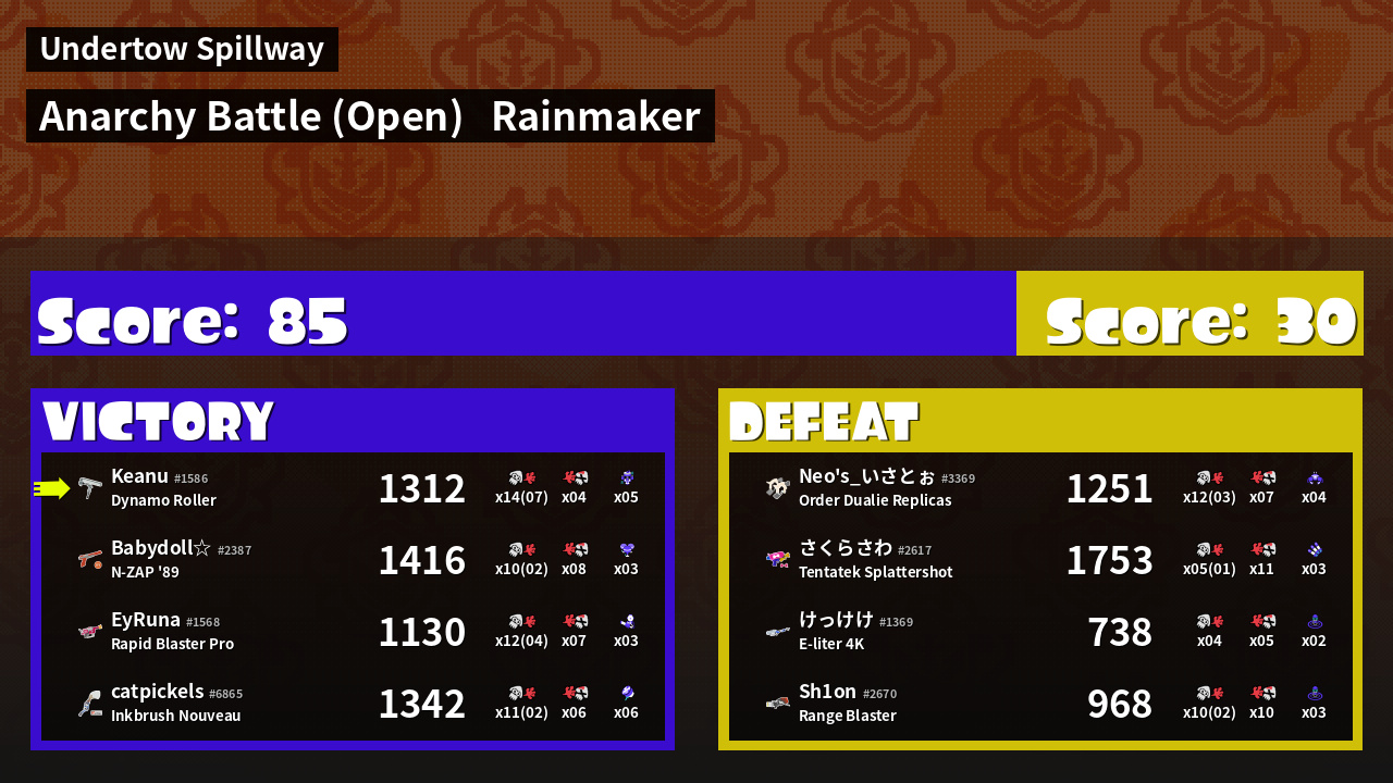 | Mode | Rainmaker - Anarchy Battle (Open) | ||