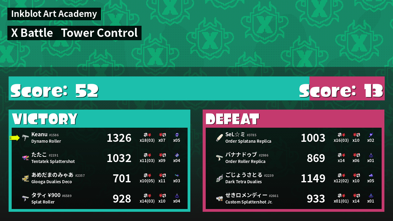 | Medals | #1 Overall Splatter #1 Turf Inker #1 Enemy Splatter | ||