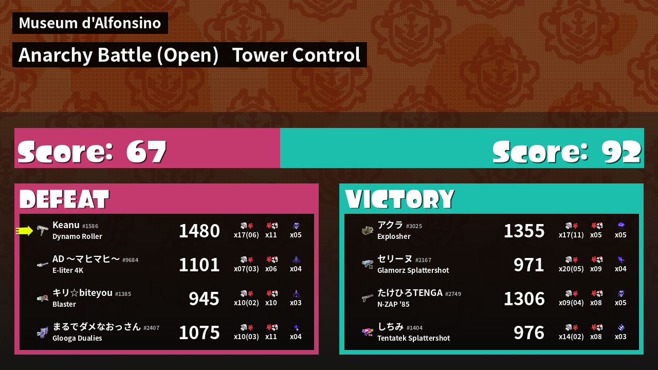 | Mode | Tower Control - Anarchy Battle (Open) | ||
