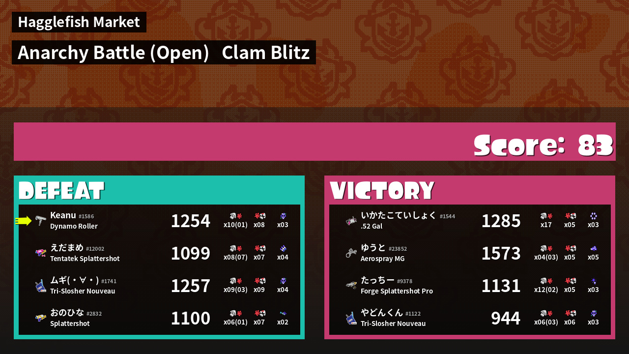 | Mode | Clam Blitz - Anarchy Battle (Open) | ||