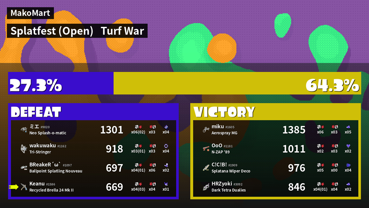 | Medals | #1 Splat Assister #1 Ink Consumer #1 Triple Splashdown User | ||