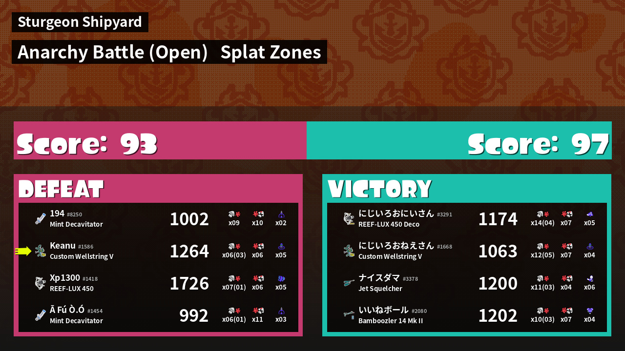 | Mode | Splat Zones - Anarchy Battle (Open) | ||