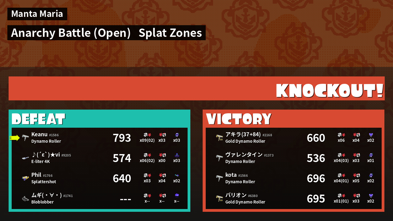 | Mode | Splat Zones - Anarchy Battle (Open) | ||