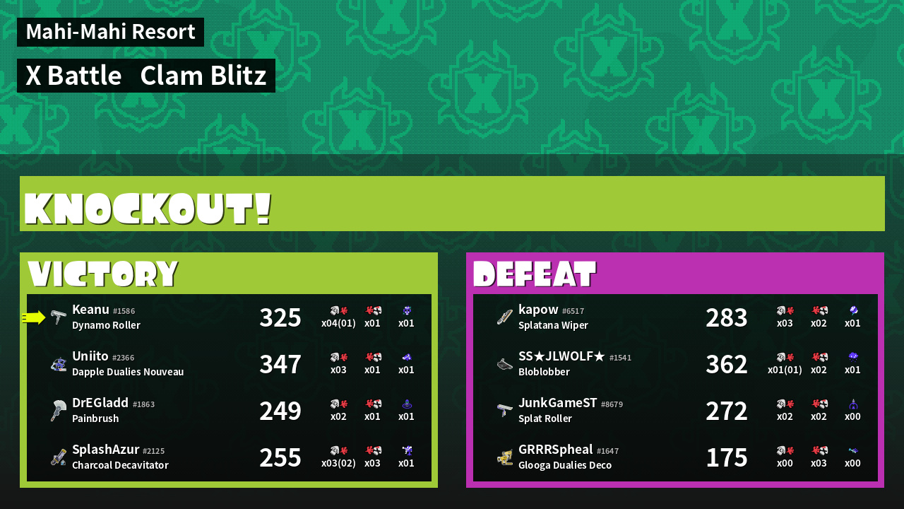 | Medals | #1 Overall Splatter #1 Clam Carrier #1 Enemy Splatter | ||