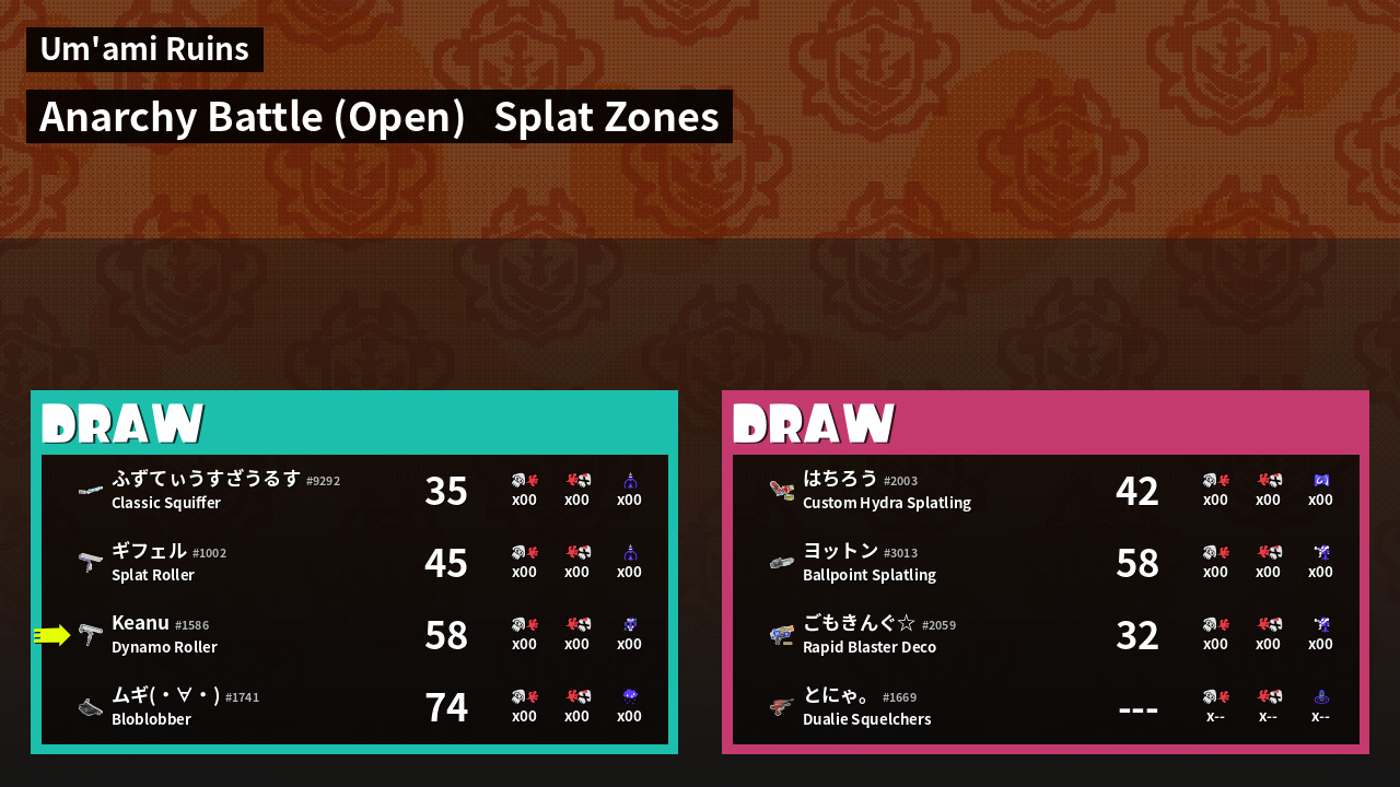 | Mode | Splat Zones - Anarchy Battle (Open) | ||