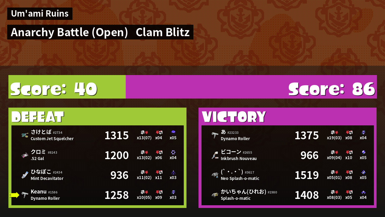 | Mode | Clam Blitz - Anarchy Battle (Open) | ||