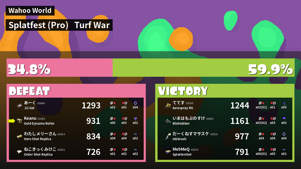 | Medals | #1 Overall Splatter #1 Enemy-Base Inker #1 Enemy Splatter | ||