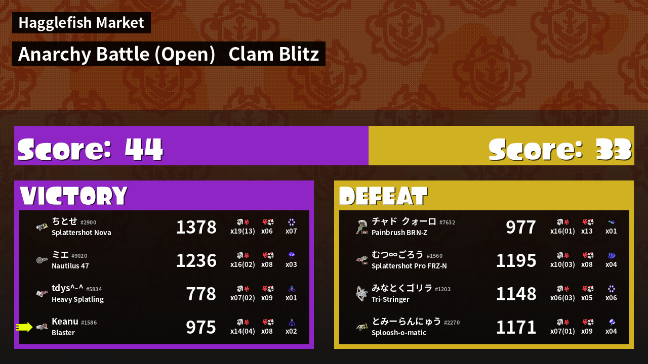 | Mode | Clam Blitz - Anarchy Battle (Open) | ||