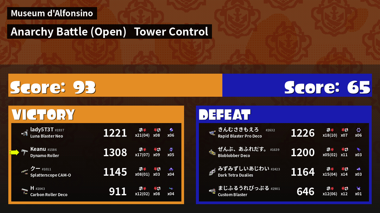 | Mode | Tower Control - Anarchy Battle (Open) | ||