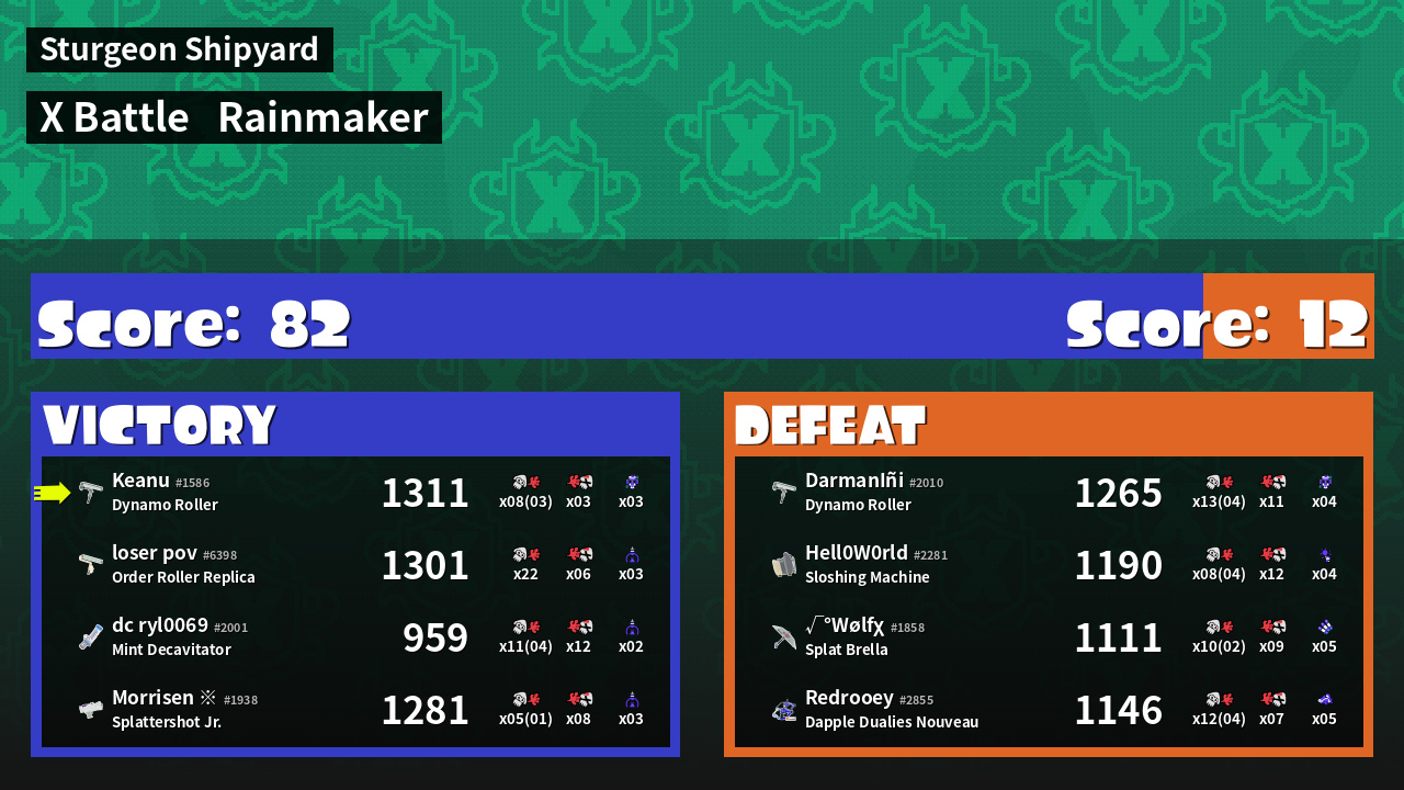 | Weapon | Dynamo Roller ( Sprinkler / Tacticooler) | ||