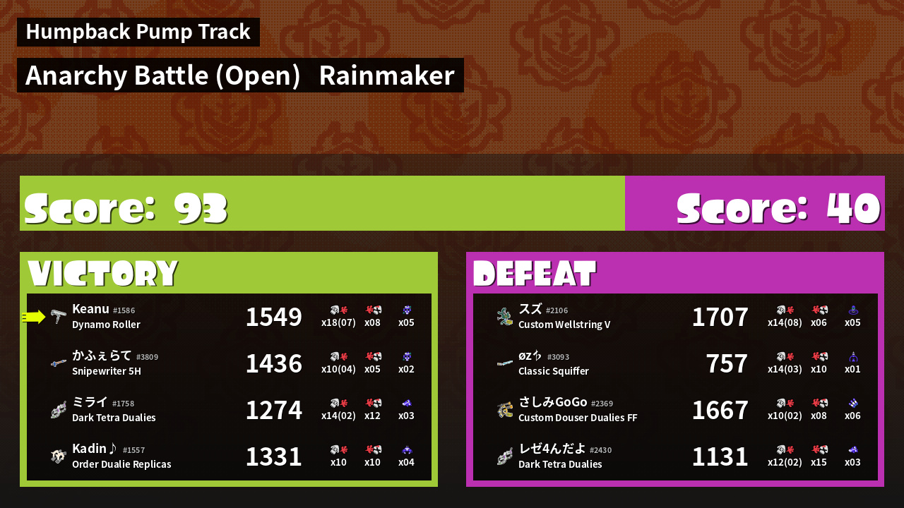 | Mode | Rainmaker - Anarchy Battle (Open) | ||